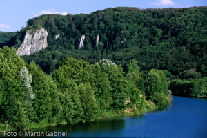 Ursprüngliche Flusslandschaften wechseln ab mit mediterran anmutenden Karstlandschaften. Schlösser und Klöster liegen ebenso am Jurasteig wie Felszinnen, duftende Wacholderheiden, lichte Kiefern- und schattige Buchenwälder. Naturfreunde können am Jurasteig noch Tiere und Pflanzen beobachten, die andernorts selten geworden sind. Wanderfalke, Biber und Eisvogel haben im Bayerischen Jura noch ein Zuhause. In 12 maßgeschneiderten Etappen durch die herrliche Naturlandschaft des Bayerischen Jura - das ist der Qualitätsweg Jurasteig! Als 230 km langer Rundweg im Herzen Bayerns führt er über die Höhen und Täler von Donau, Altmühl, Weisser und Schwarzer Laber, Lauterach, Vils und Naab. Darüber hinaus bieten sich 17 Schlaufenwege, die von der Hauptroute abzweigen als zusätzliche Tagestouren an. Wandern am Jurasteig wird zum Wandererlebnis, garantiert z.B. durch einen hohen Anteil naturbelassener Wege, eine einzigartige, attraktive Mittelgebirgslandschaft, aber auch zahlreiche Rastmöglichkeiten und die Einbindung einer wanderfreundlichen Gastronomie in das Jurasteig-Konzept. Nicht zuletzt sorgt eine moderne, lückenlose und eindeutige Beschilderung – separat für beide Richtungen – stets für eine sichere Orientierung.