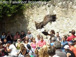 Die Falknerei auf Schloss Rosenburg, präsentiert Ihnen die unglaubliche Flugkunst von Adler, Geier & Co. Erleben Sie Greifvögel hautnah! Die Artenschutz- und Forschungsstation zeigt die Könige der Lüfte in freiem Flug - ein atemberaubendes Schauspiel für Jung und Alt. Vor oder nach der Flugschau haben Sie die Möglichkeit, bei einem Rundgang über das Burggelände die Greifvögel aus nächster Nähe kennen zu lernen. Im Burgmuseum können Sie viel über die Geschichte der Falknerei erfahren, ebenso über Greifvögel und die gesamte einheimische Tierwelt.